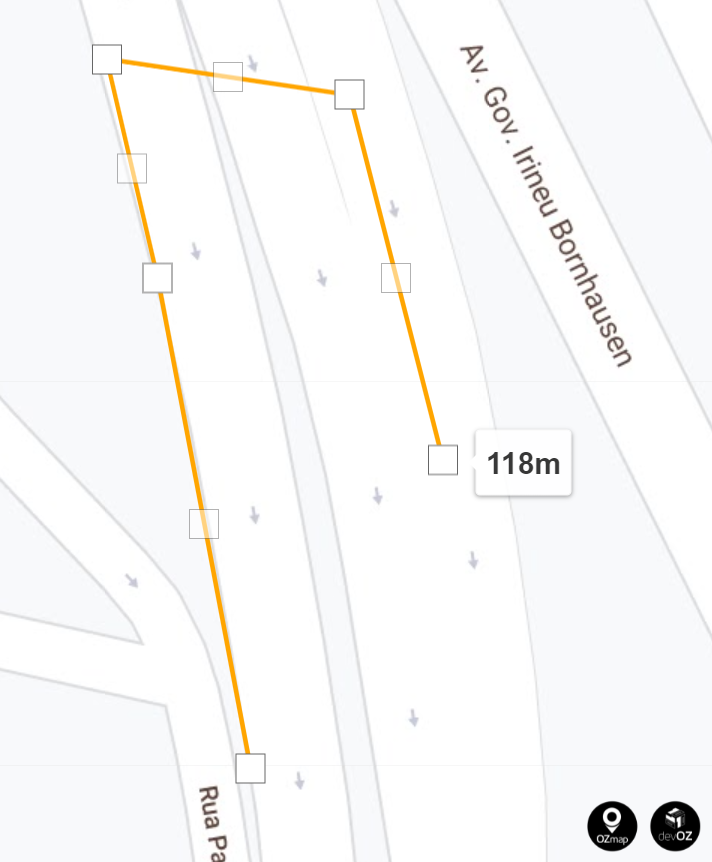 It is important to remember that the distance indicated in meters will always be the total distance between the two ends of the route, considering the path taken through the points.