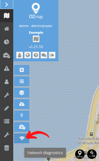 To access the network tools, click on the second button in the map menu, as shown in the image below: