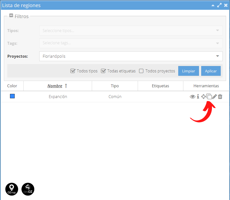 Es importante recordar que estas regiones no son diferentes entre sí en cuanto a las utilidades del sistema, en todas ellas es posible personalizar el tipo de región de su proyecto, modificando colores y nombres según su preferencia. Este patrón dado por OZmap es solo una sugerencia de usabilidad, pero puedes agregar nuevas categorías, clasificando tus regiones en ciudades o incluso en barrios, por ejemplo para saber más sobre los tipos de regiones, haz clic aquí. |