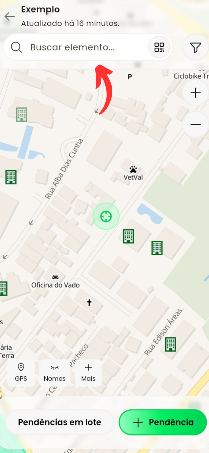 Na parte superior da tela, há um campo de pesquisa. Ali você pode pesquisar elementos específicos pelo nome.