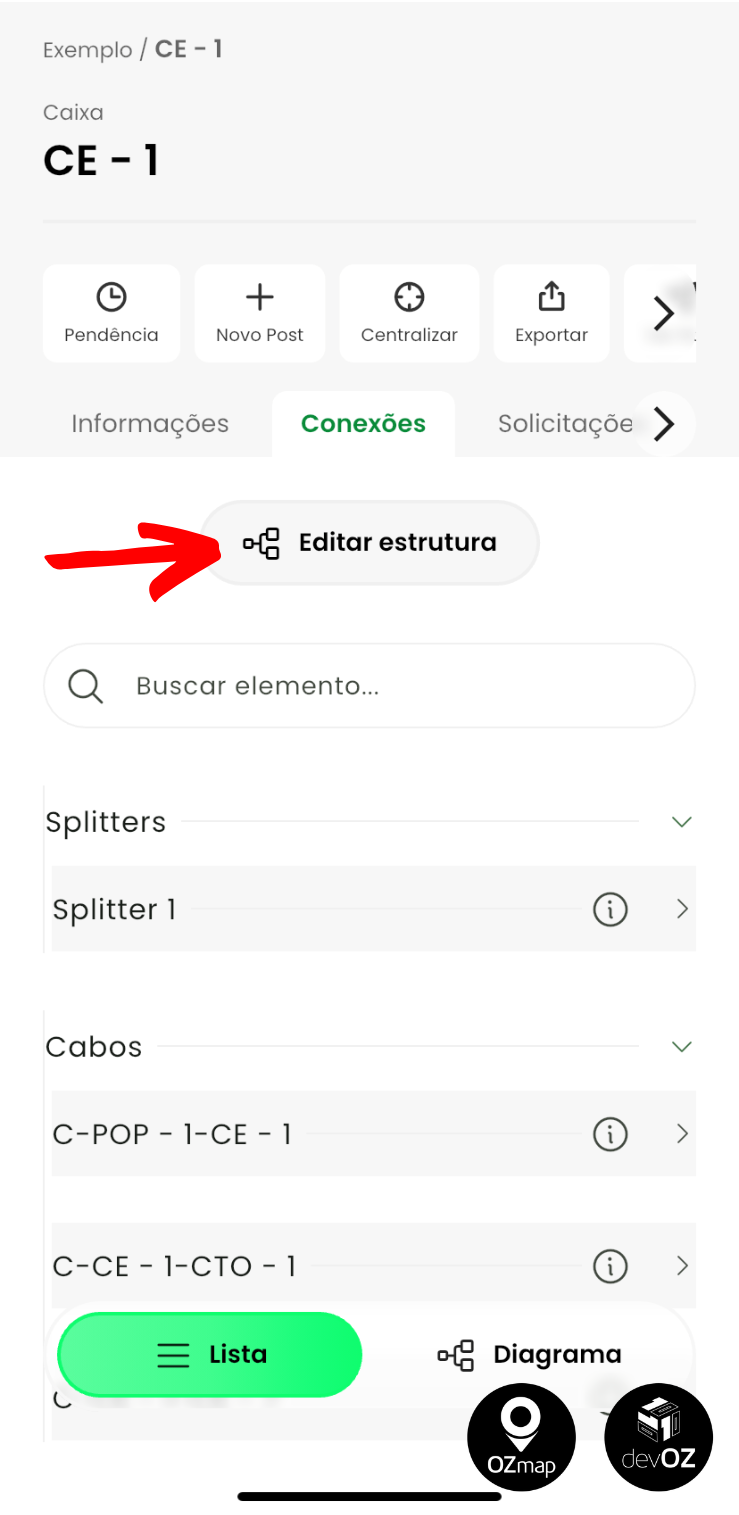 Ao acessar as caixas com o módulo habilitado, na aba de Conexões haverá um botão em destaque para Editar Estrutura