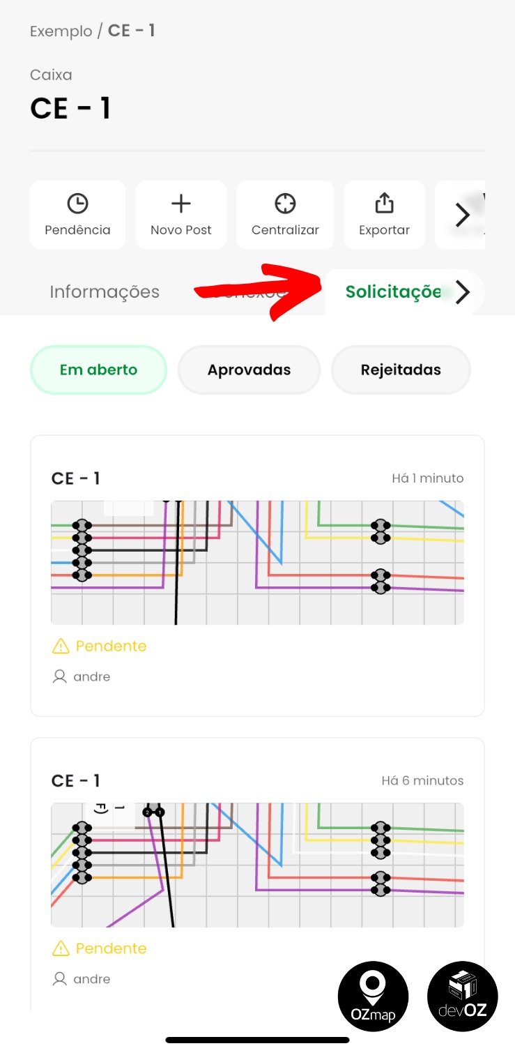 Com o módulo ativo, o OZmap irá mostrar uma nova aba: Solicitações de alteração