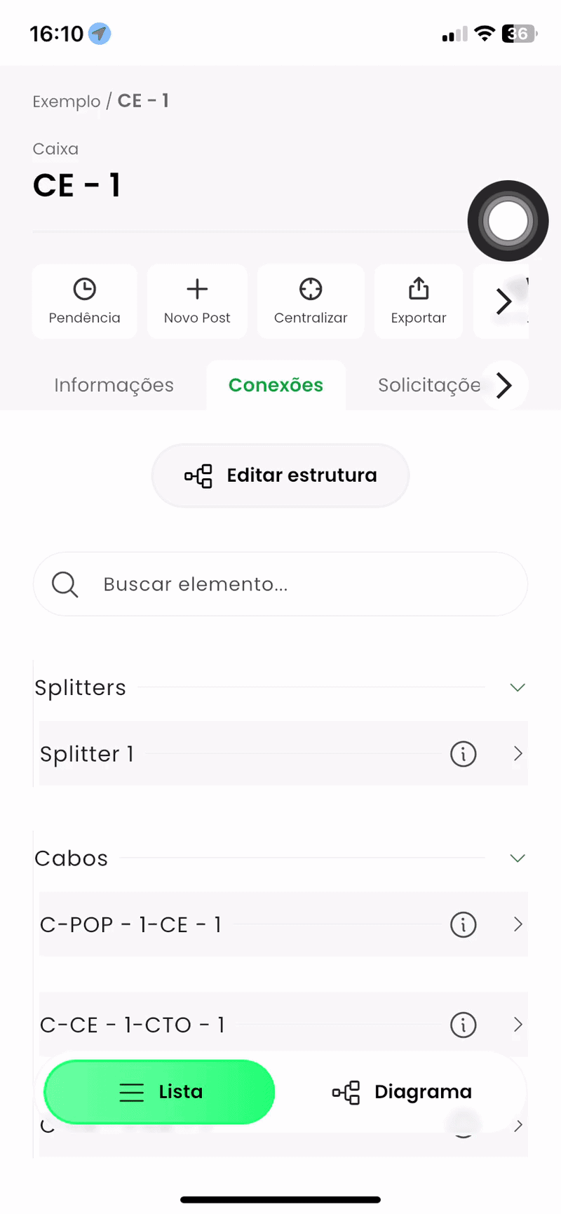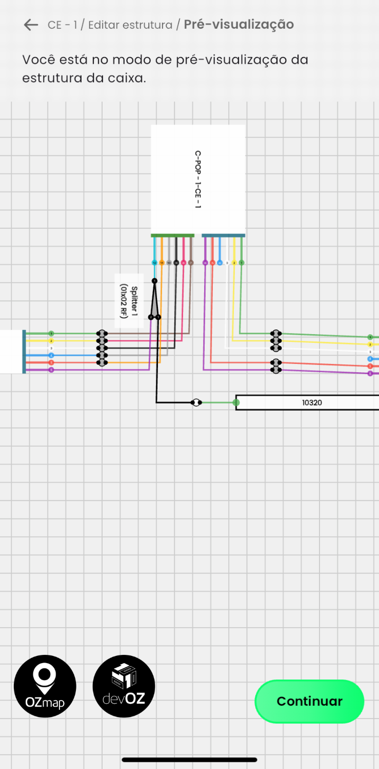 A partir deste momento, entra-se no modo de sugestão. As informações de conexão da caixa ficarão disponíveis para edição, sendo possível efetuar trocar de porta, novas conexões (únicas ou múltiplas) e desconexões.